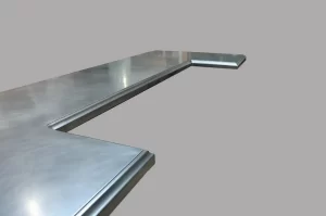 Aluminum is a soft metal that is typically too malleable to be used in sheet metal countertops, though its silver-tone is often in demand by designers and clients.